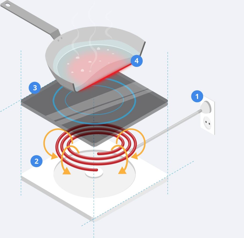 Inductie biedt veiligheid, snelheid en energiebesparing. Alleen de pan wordt warm, niet de plaat zelf, wat brandwonden voorkomt. Water kookt sneller en je regelt de temperatuur preciezer, wat koken eenvoudiger maakt.