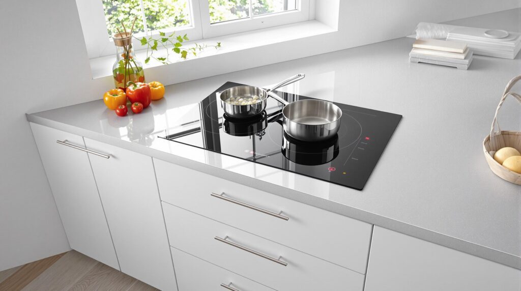 Een inductieplaat warmt alleen je pan op, niet de plaat zelf. Dit is veilig en bespaart energie.