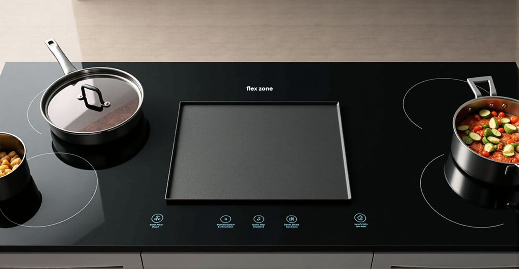 Onder het glas zitten inductiespoelen die samenwerken. Sensoren zien waar je pan staat en hoe groot deze is. Alleen de spoelen onder je pan gaan aan, wat stroom bespaart. Je regelt de warmte net zo nauwkeurig als bij gewone kookzones. Je kunt zelfs meerdere kleine pannen op één flexzone zetten, elk met hun eigen warmte.