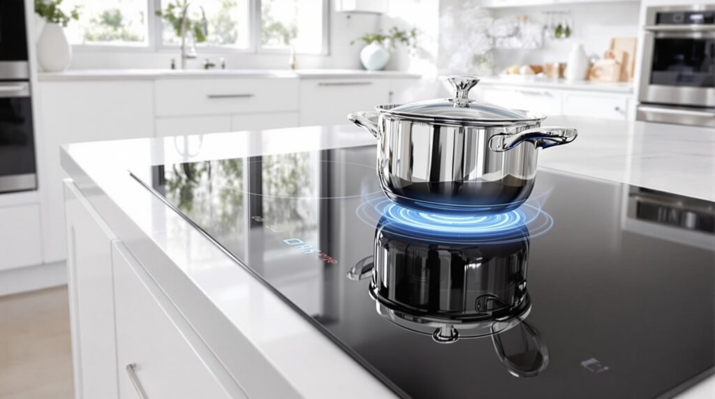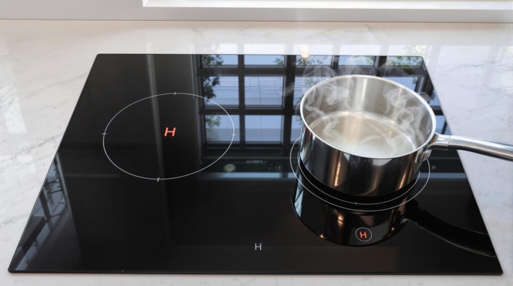 Een lege pan op inductie brengt meer risico’s met zich mee dan je denkt. Bij inductie gaat de energie direct naar de pan, anders dan bij gas of keramische platen. Zonder eten of vloeistof in de pan stijgt de temperatuur heel snel. Dit kan je pan en kookplaat beschadigen. Inductieplaten hebben veel kracht – tussen 1000 en 3700 watt – waardoor een lege pan binnen enkele momenten boven de 300 °C komt. Op een hoge stand kan de temperatuur in 1 tot 3 minuten van kamertemperatuur naar meer dan 200 °C stijgen. Dit is belangrijk om te weten als je net bent overgestapt naar inductie.